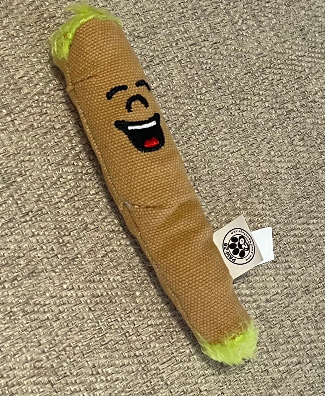 Lil' B is approximately 5.5" tall with a catnip sewn in. Hang tag with UPC and J hook with a catnip sewn in. He great for light play. Better yet, for Instagram pics and video of your pet with his own blunt. Your pet will love joining you for 4:20!