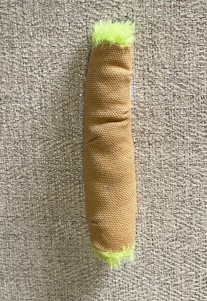 Lil' B's back is blank and looks like a cigar blunt. Lil' B's body is made of thick canvas with soft fleece at the top and bottom that cats love.